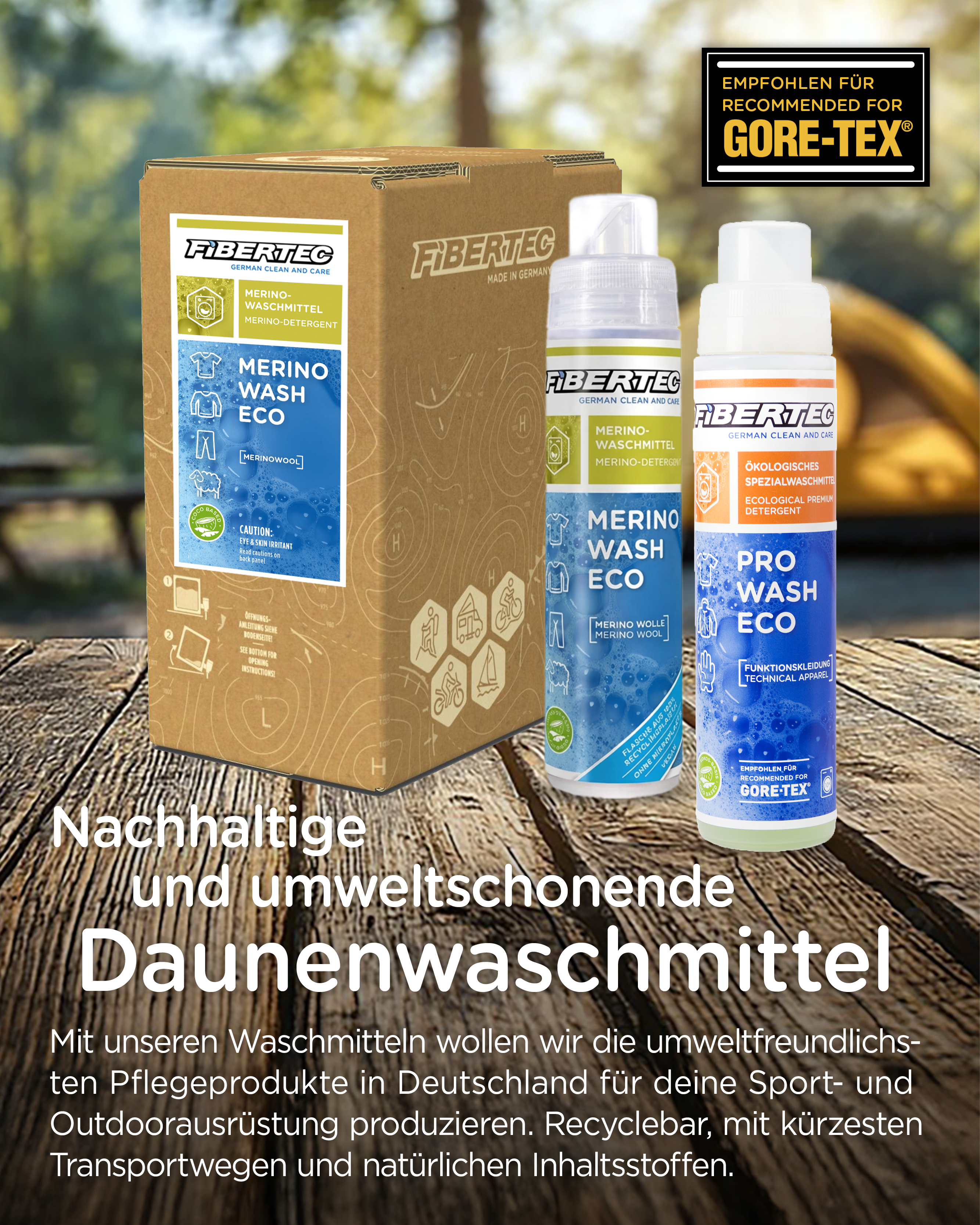 Die Tenside in allen Fibertec-Waschmitteln basieren auf Kokosöl. Sie enthalten keine Weichspüler, Bleichmittel oder optischen Aufheller. Die Inhaltsstoffe sind leicht biologisch abbaubar (gemäß Verordnung (EG) Nr. 648/2004).